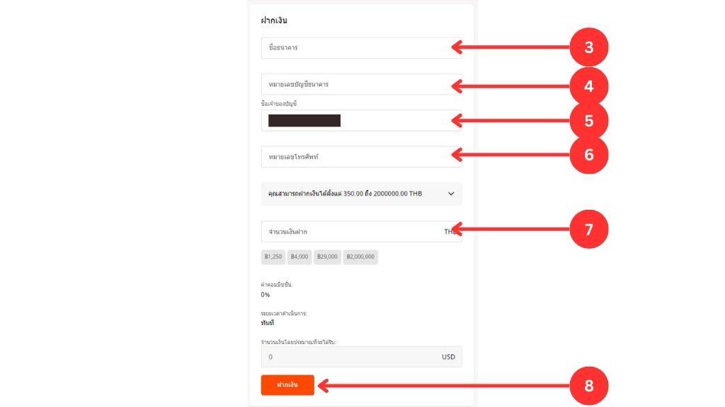 - ใส่ “หมายเลขบัญชีธนาคาร