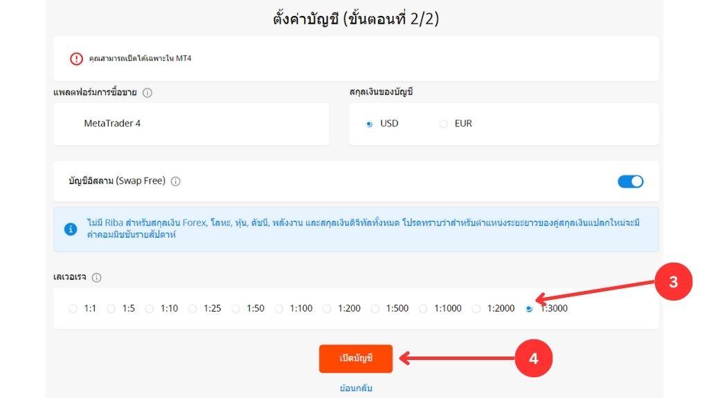 กดเลือกเลเวอเรจที่ “1:3000” (ค่าสูงสุดเท่าที่มี)