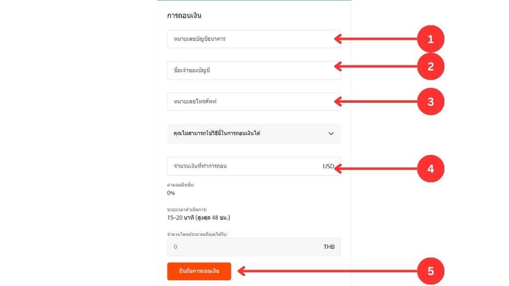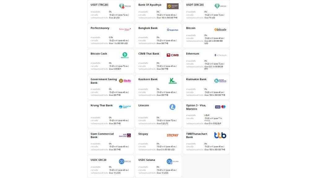 - เลือกถอนเงินตามรายการตามรูป มีทั้งธนาคารออนไลน์ และฝากแบบ คริปโตเคอเรนซี่
