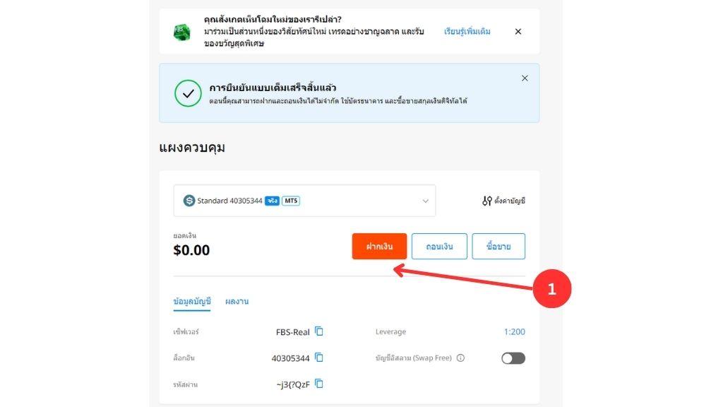 การฝากเงินเข้าโบรกเกอร์ FBS