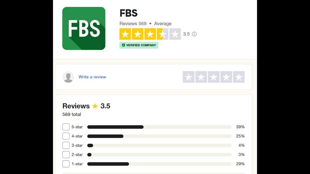 - คะแนนรีวิวจาก Trustpilot ของโบรกเกอร์ FBS อยู่ที่ 3.5 ดาว จากรีวิวทั้งหมด 569 ราย