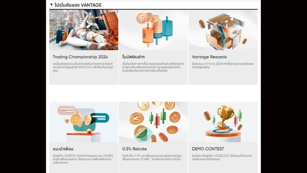 - โปรโมชั่นและโบนัส: Vantage มักมีโปรโมชั่นและโบนัสสำหรับเทรดเดอร์ใหม่และปัจจุบัน